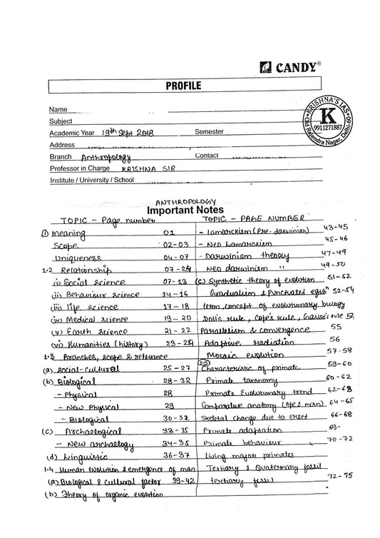 KRISHNA IAS Anthropology Optional Notes Class Notes (English Medium)