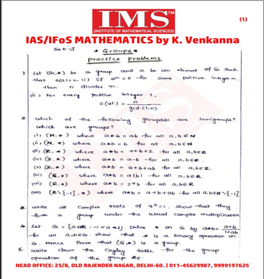 IMS MATHEMATICS OPTIONAL K VENKANNA SIR 2024